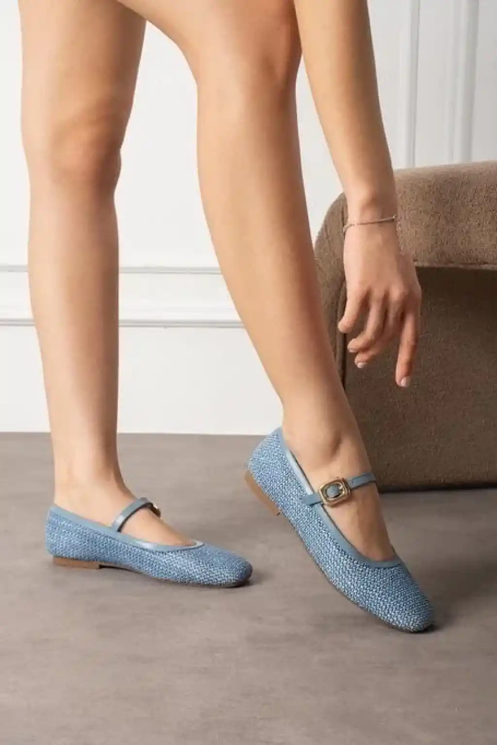 Rives Mavi Cilt Hasır Dokumalı Babet Ayakkabı