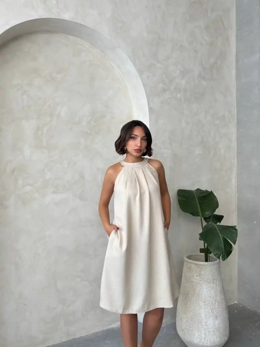 Bu salaş keten elbise ile her ortamda şıklığınızı ve rahatlığınızı koruyabilirsiniz. Sipariş vererek hemen sahip olabilirsiniz!