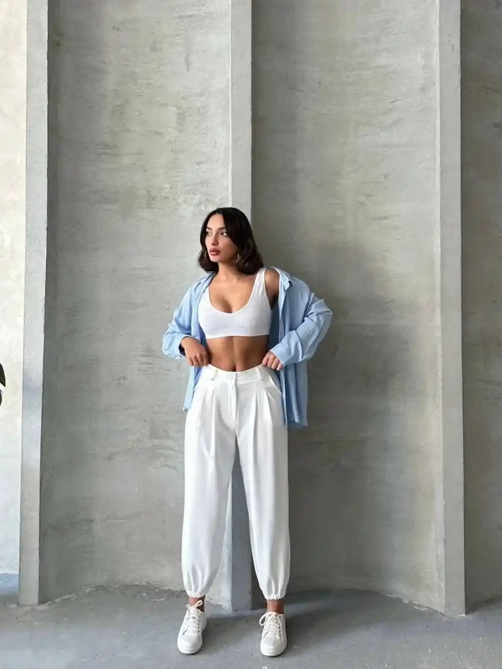 Şalvar pantolonuyla tarzınızı yansıtın, gün boyu şıklık ve konforun keyfini çıkarın.