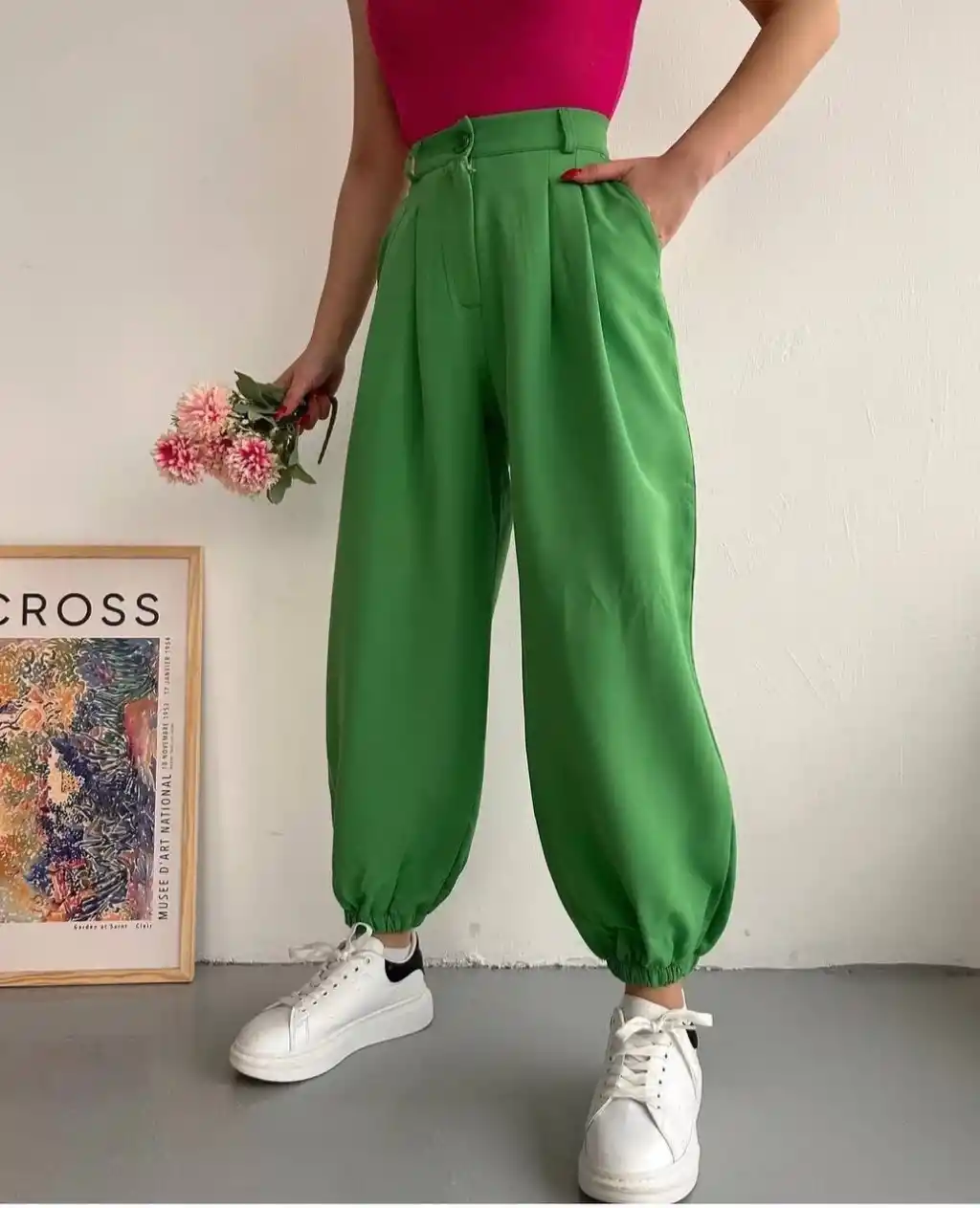 Kadın giyimde şıklık ve rahatlığı bir arada sunan Yeşil Şalvar Pantolon S23202, gardırobunuzun vazgeçilmezi olmaya aday! Kaliteli kumaşı ve modern tasarımıyla öne çıkan bu pantolon, her mevsim ve her kombinle rahatlıkla kullanabileceğiniz bir parça.