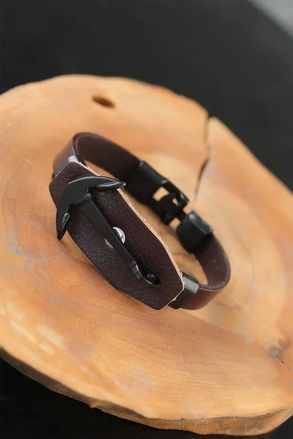 Kombin şıklığınızı Siyah Deniz Çapalı Çelik Aksesuarlı Kahverengi Deri Erkek Bileklik ile yansıtın.