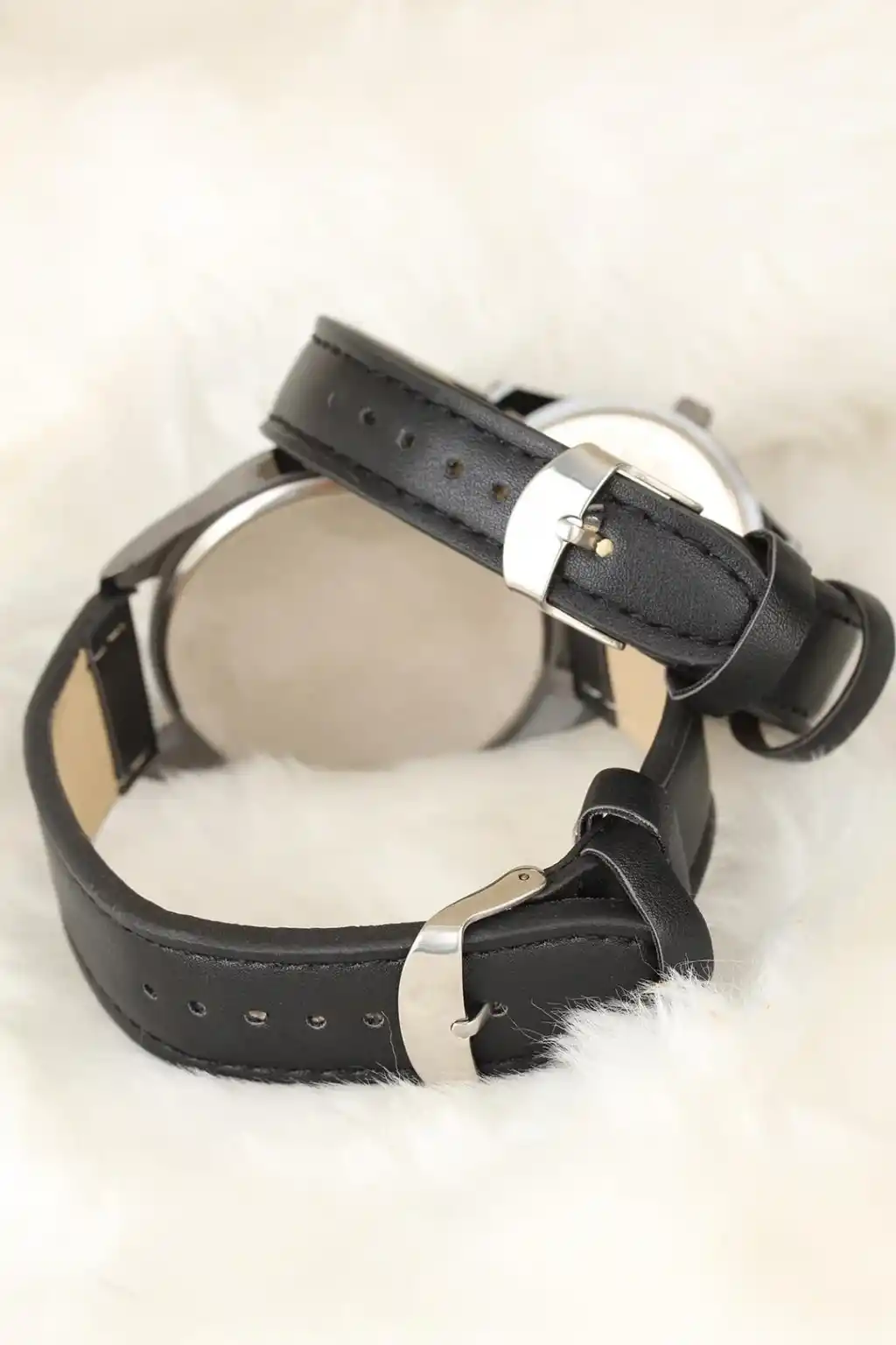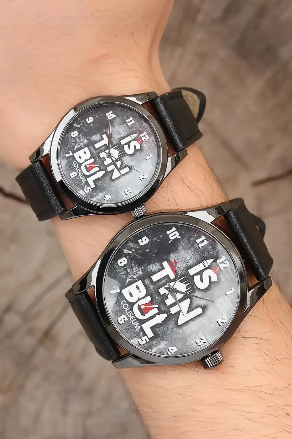 Siyah Renk Deri Kordonlu İstanbul Tasarımlı Sevgili Saatleri