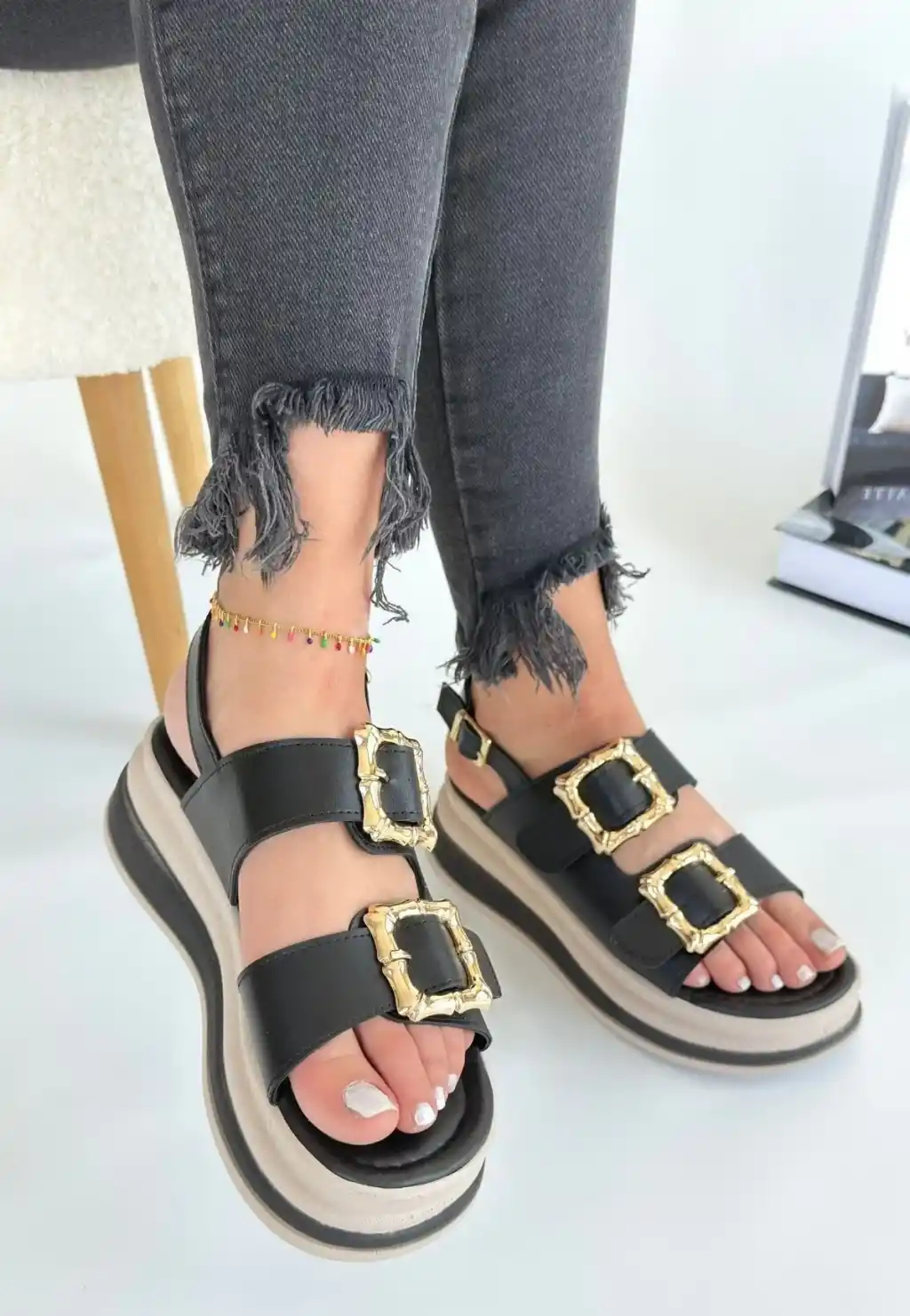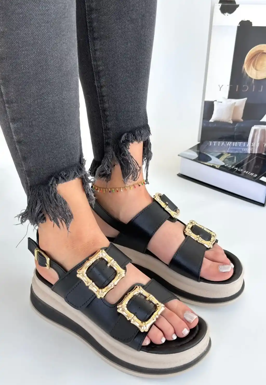 Saide Siyah Cilt Cırt Cırtlı Sandalet