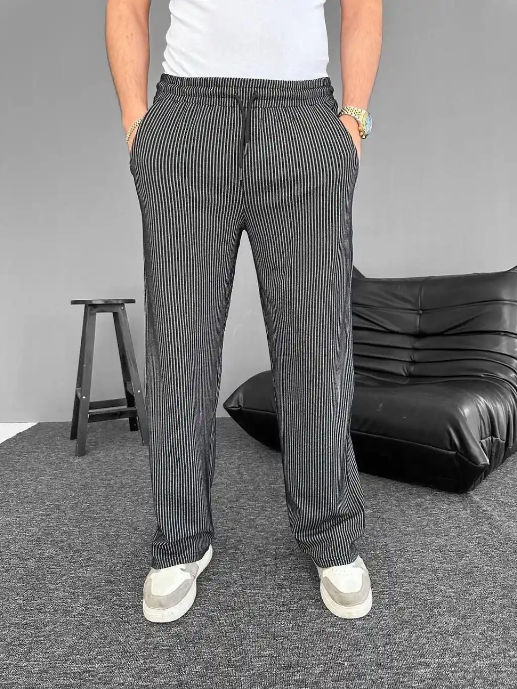 Su Yolu Çizgili Cepli Pantalon - Siyah