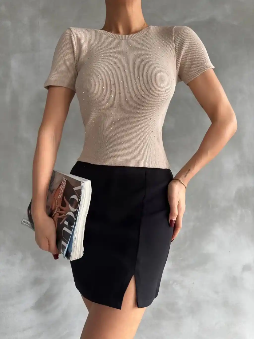 Omzu Açık Fermuarlı Bluz siyah T4330
