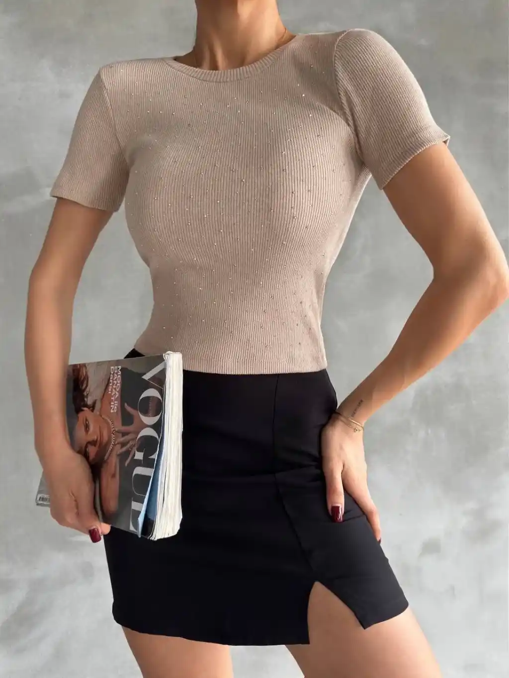 Madonna Yaka Düğmeli Bluz siyah t4329
