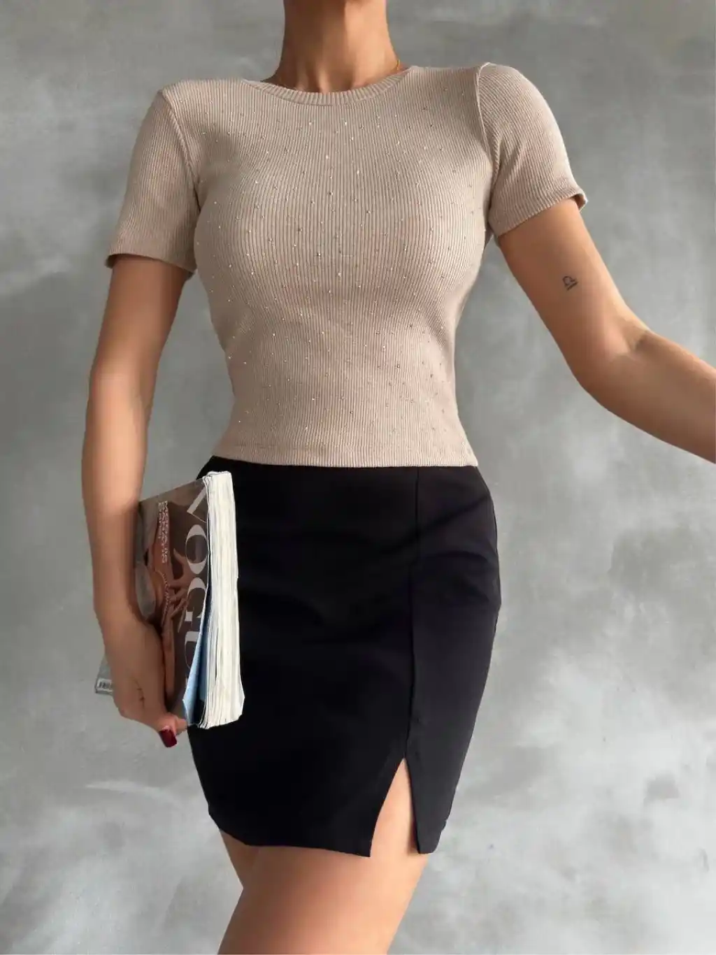 Taş baskılı kaş korse bluz