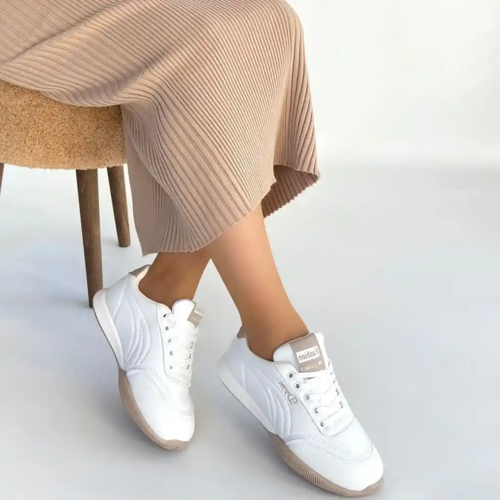 Tawen Beyaz Cilt Bağcıklı Spor Ayakkabı