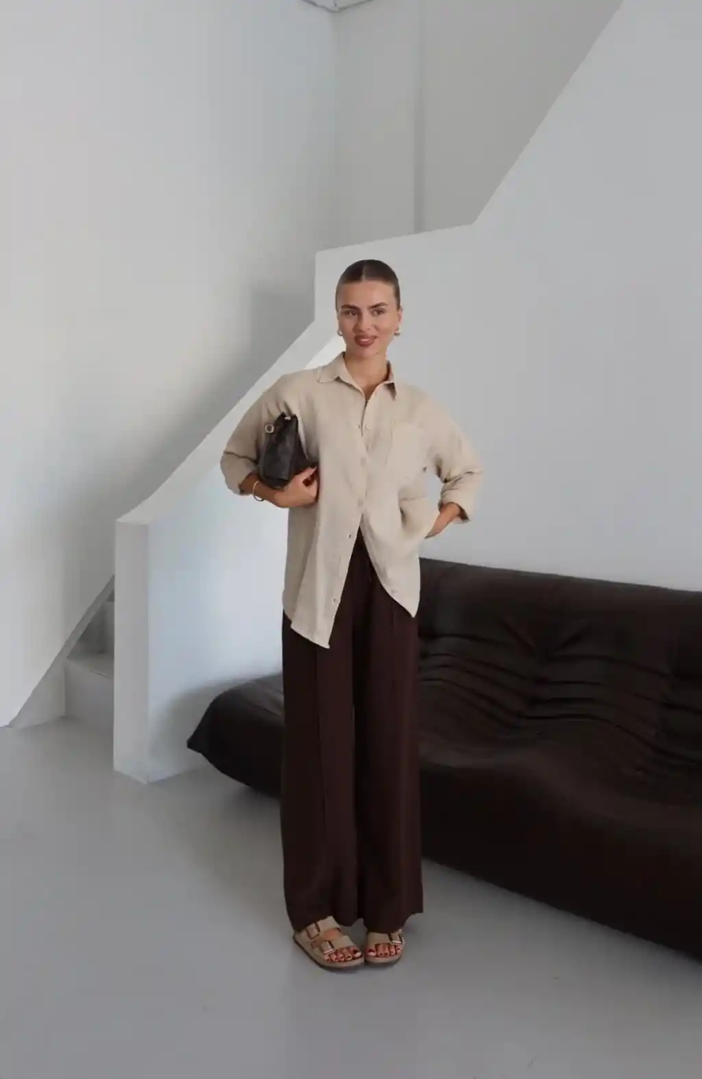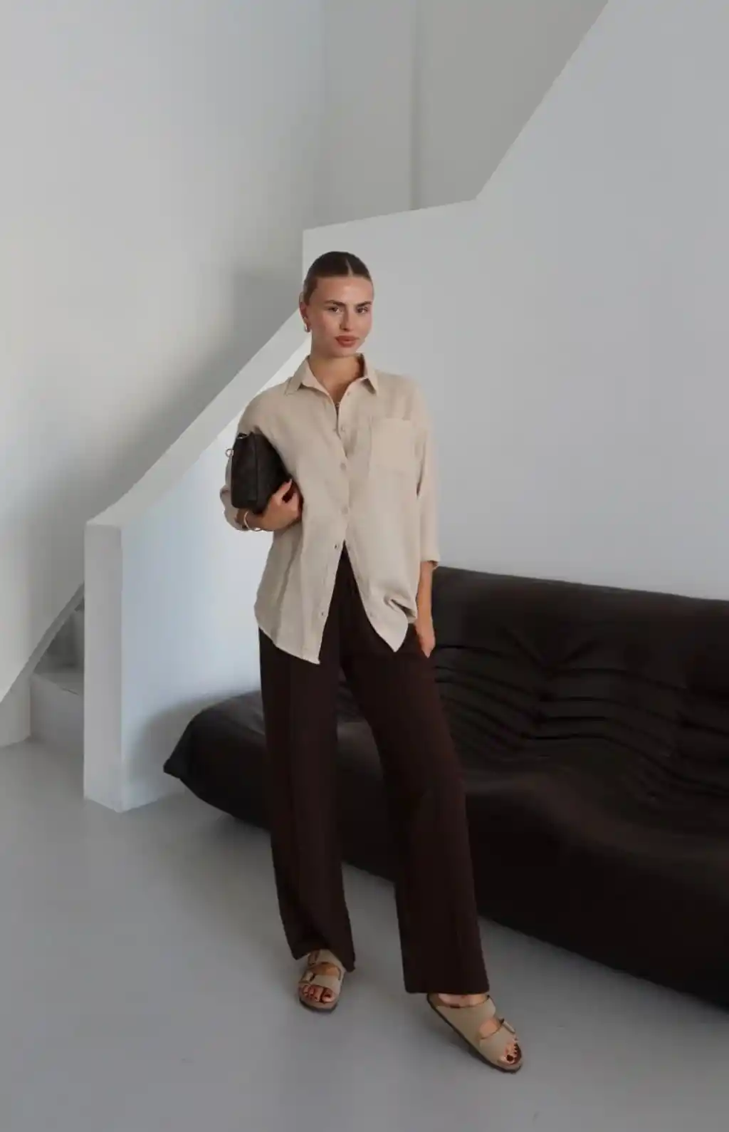Tek cepli müslin gömlek kahve pt