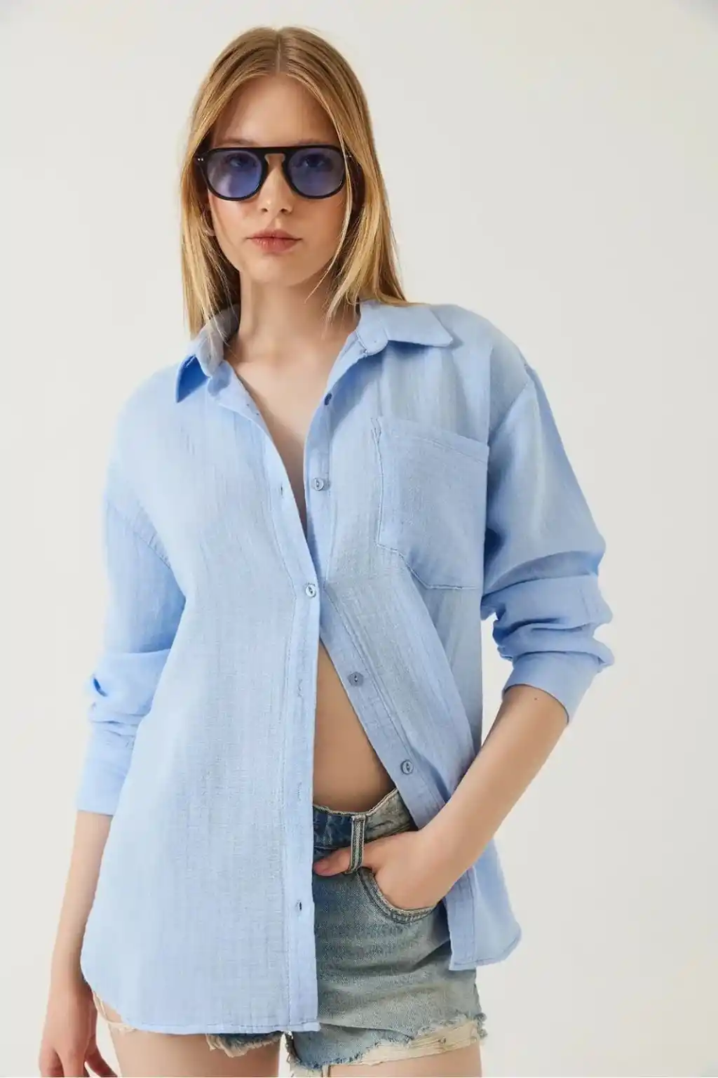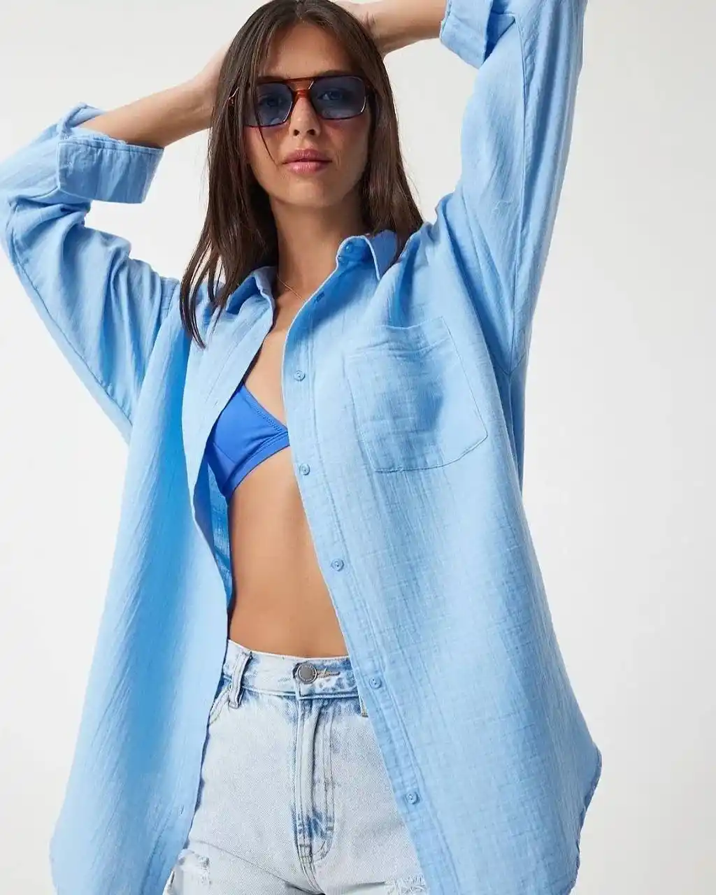 Çift renkli kısa gömlek vizonbeyaz s4021