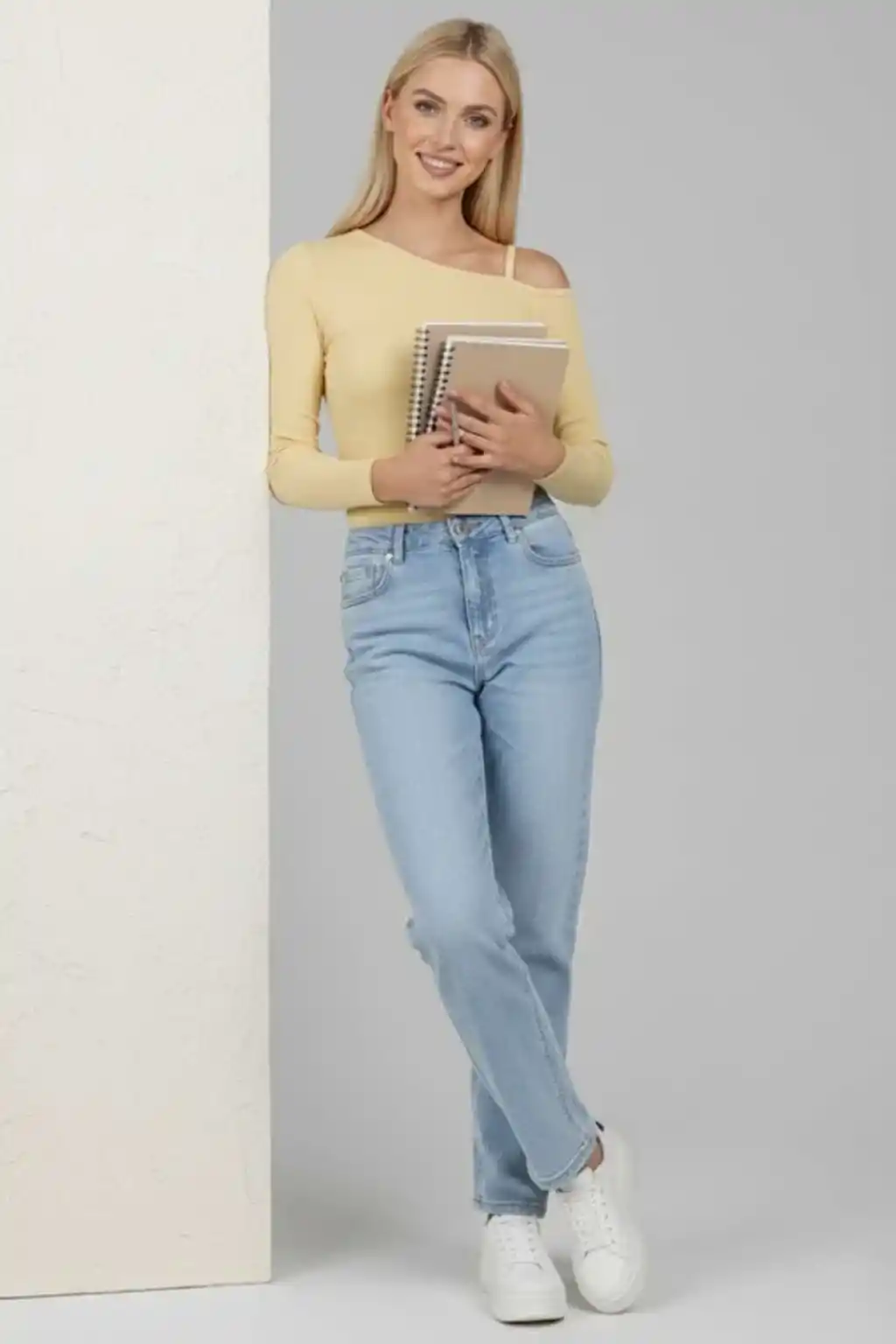 Şıklık ve rahatlığı bir arada sunan Tek Omuz İpli Bluz Sarı T4328, gardırobunuzun favori parçalarından biri olmaya aday.