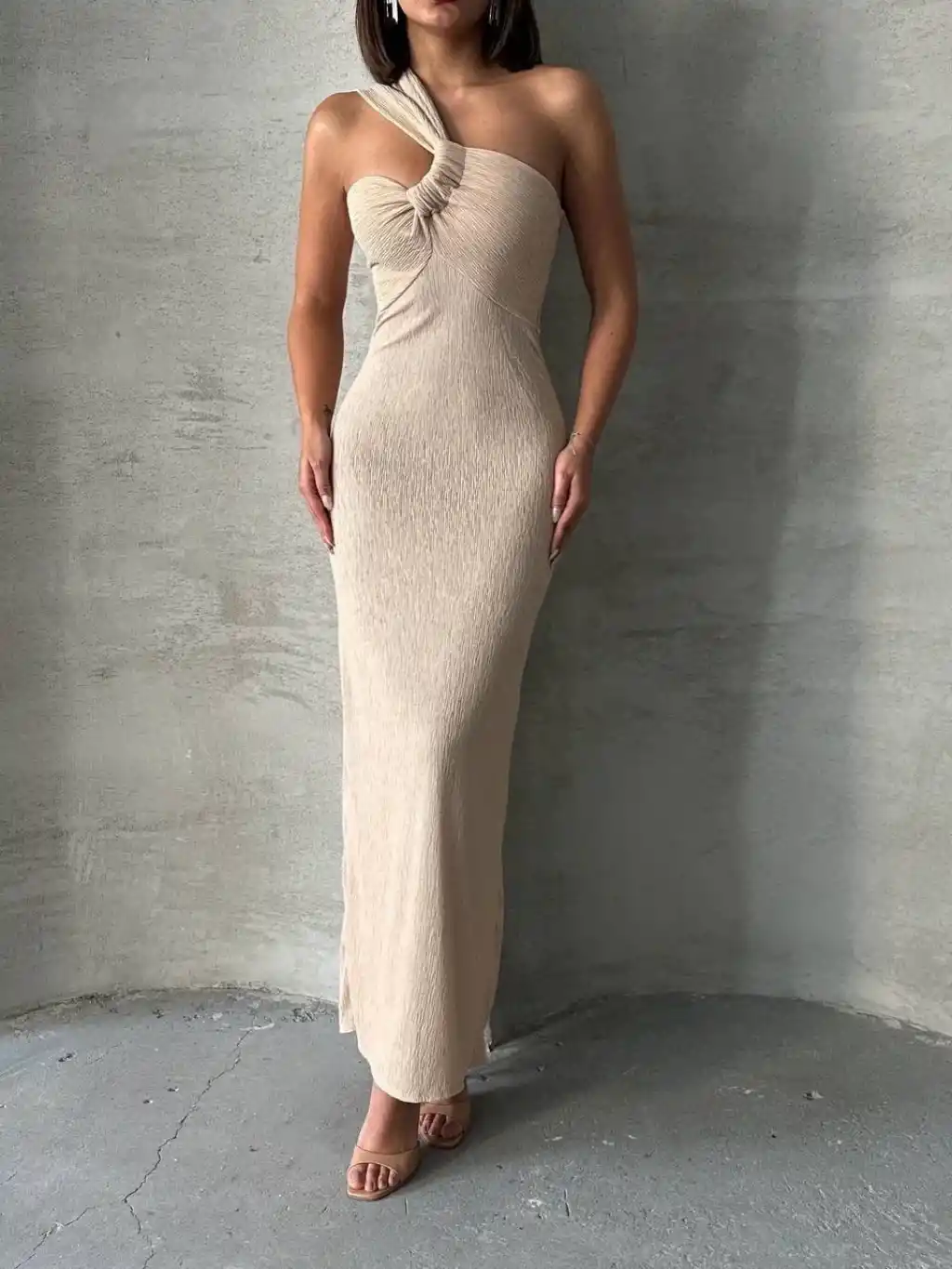 KAZAX marka tek omuz pliseli elbise, şıklık ve zarafeti bir araya getiriyor. Bu tasarım, özel davetlerde ve özel günlerde kendinizi prenses gibi hissetmenizi sağlar.