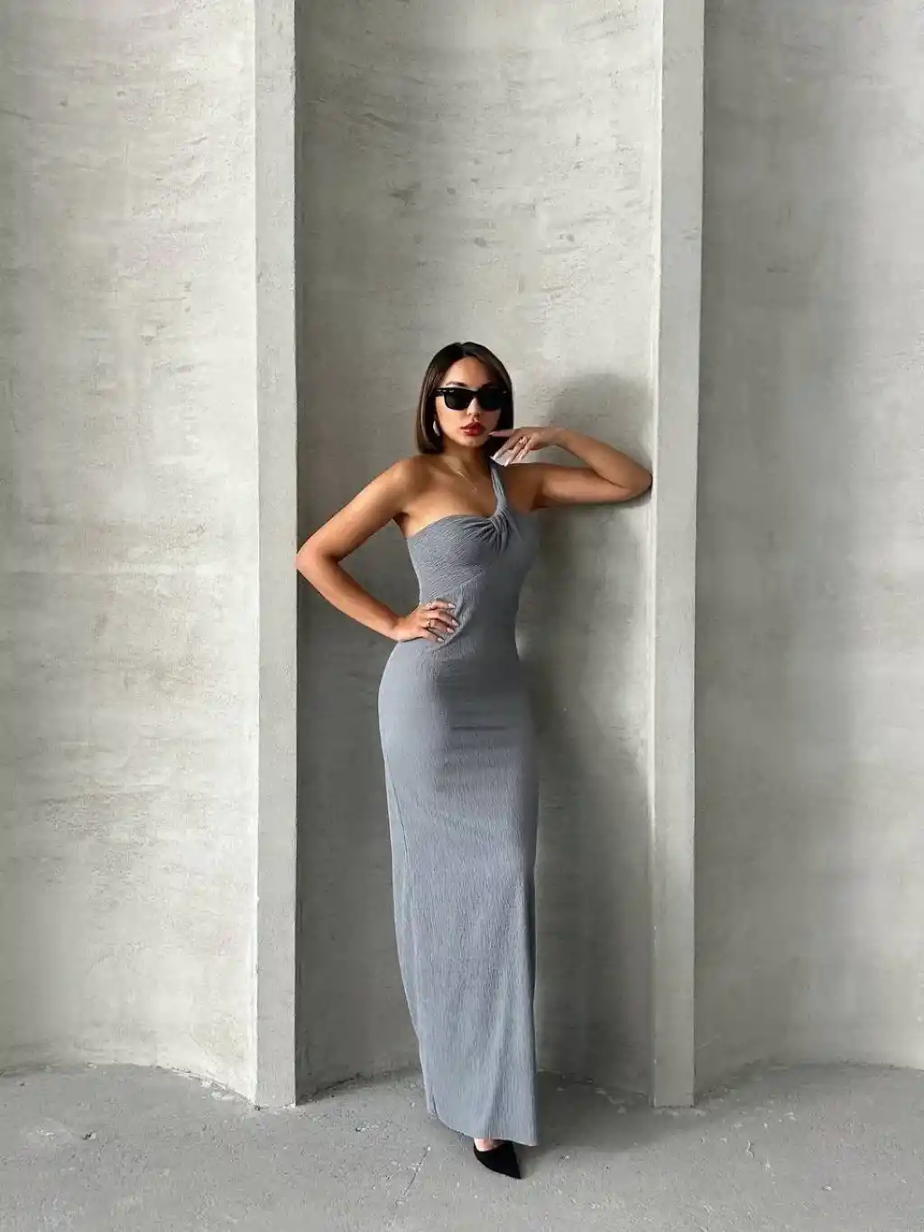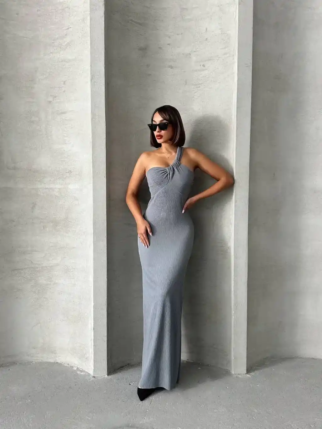 KAZAX markası tarafından tasarlanan tek omuz pliseli elbise, şıklığı ve zarafeti bir arada sunuyor. Bu göz alıcı elbise ile her şıklıkta öne çıkabilir ve kendinizi özel hissedebilirsiniz.