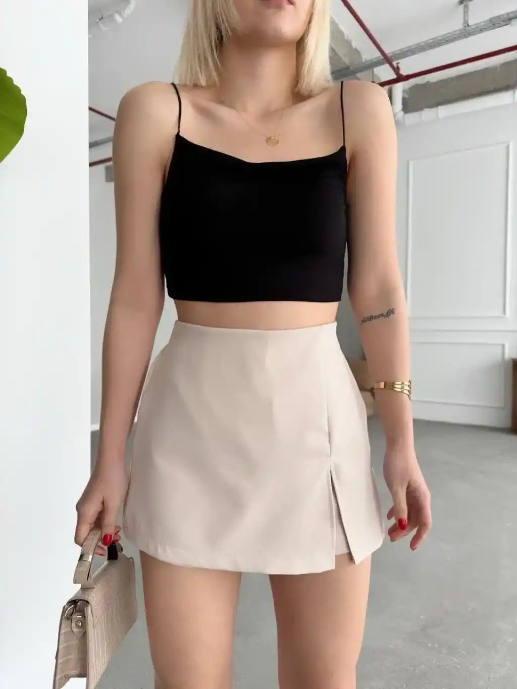 Tek yırtmajlı şort etek