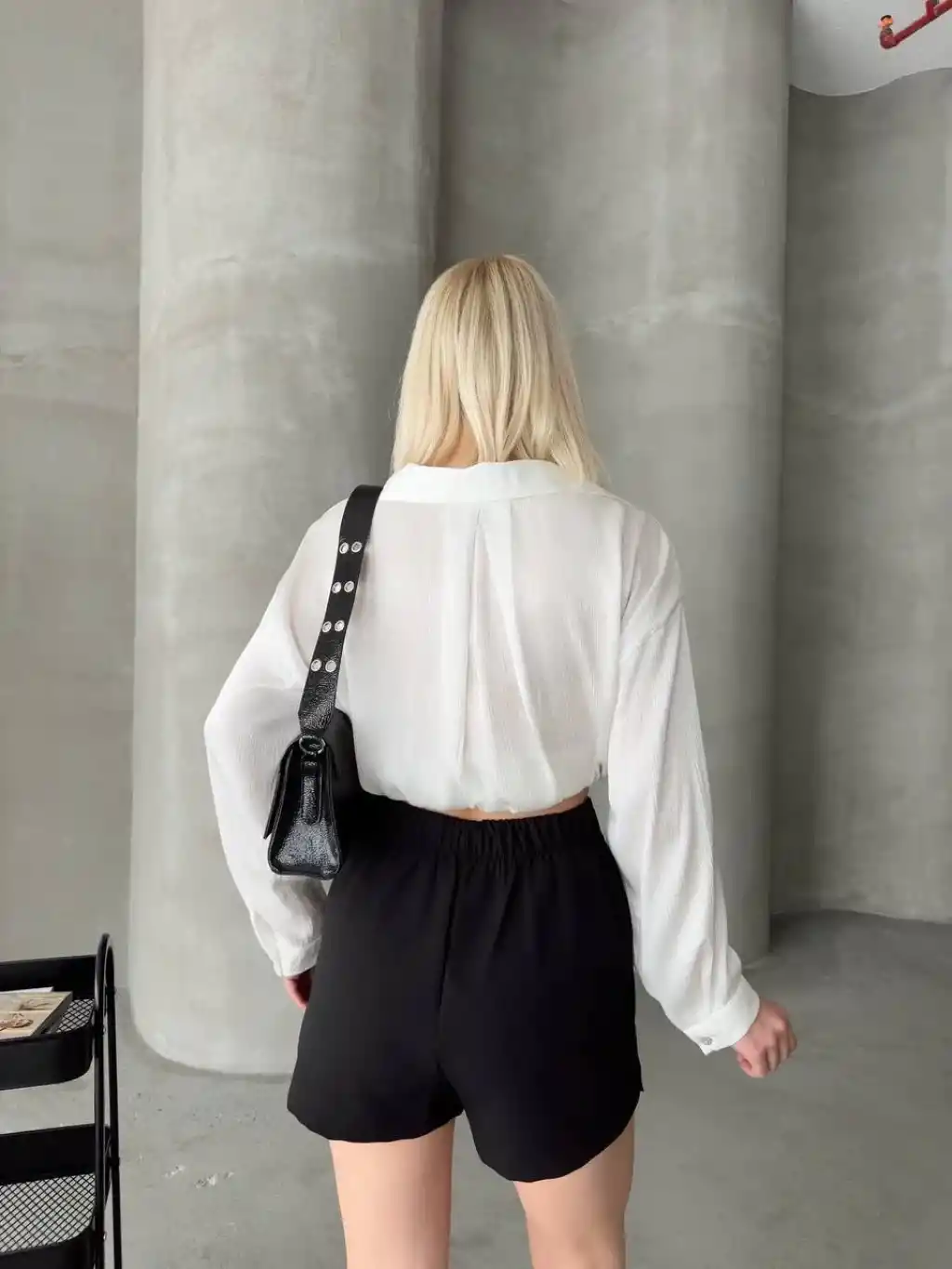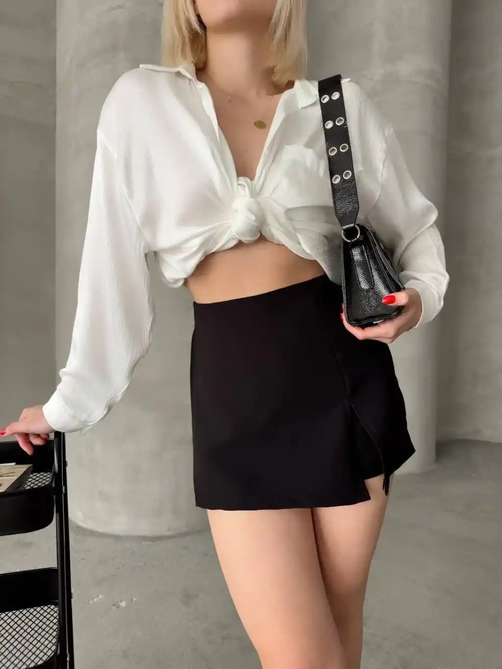 Kapaklı kaşe şort etek siyah beyaz kazayağı h261218