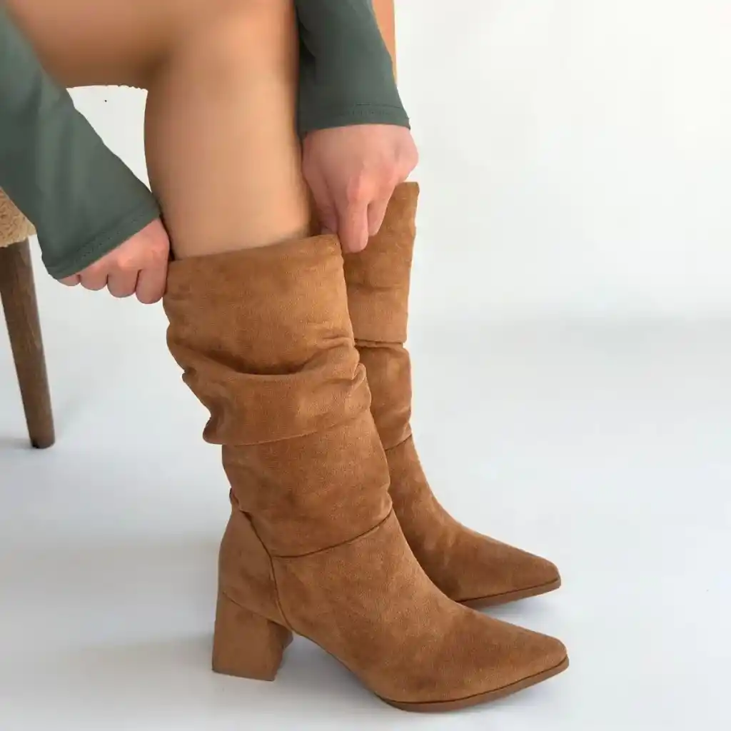 Detay: Topuklu Diz Altı Körüklü Çizme