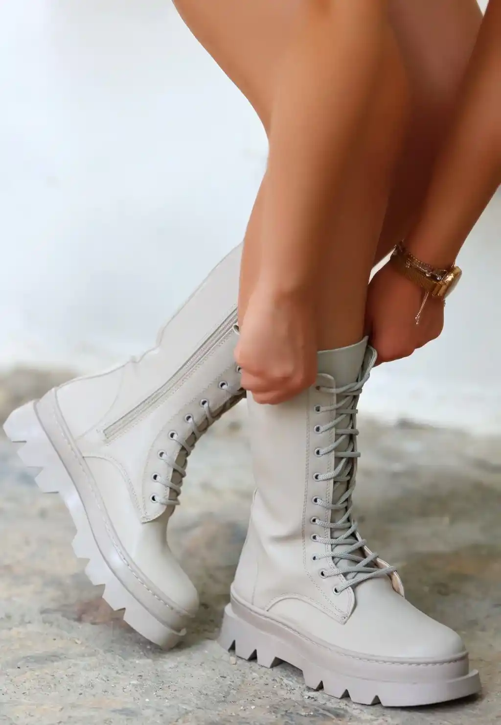 Toir Bej Cilt Bağcıklı Postal