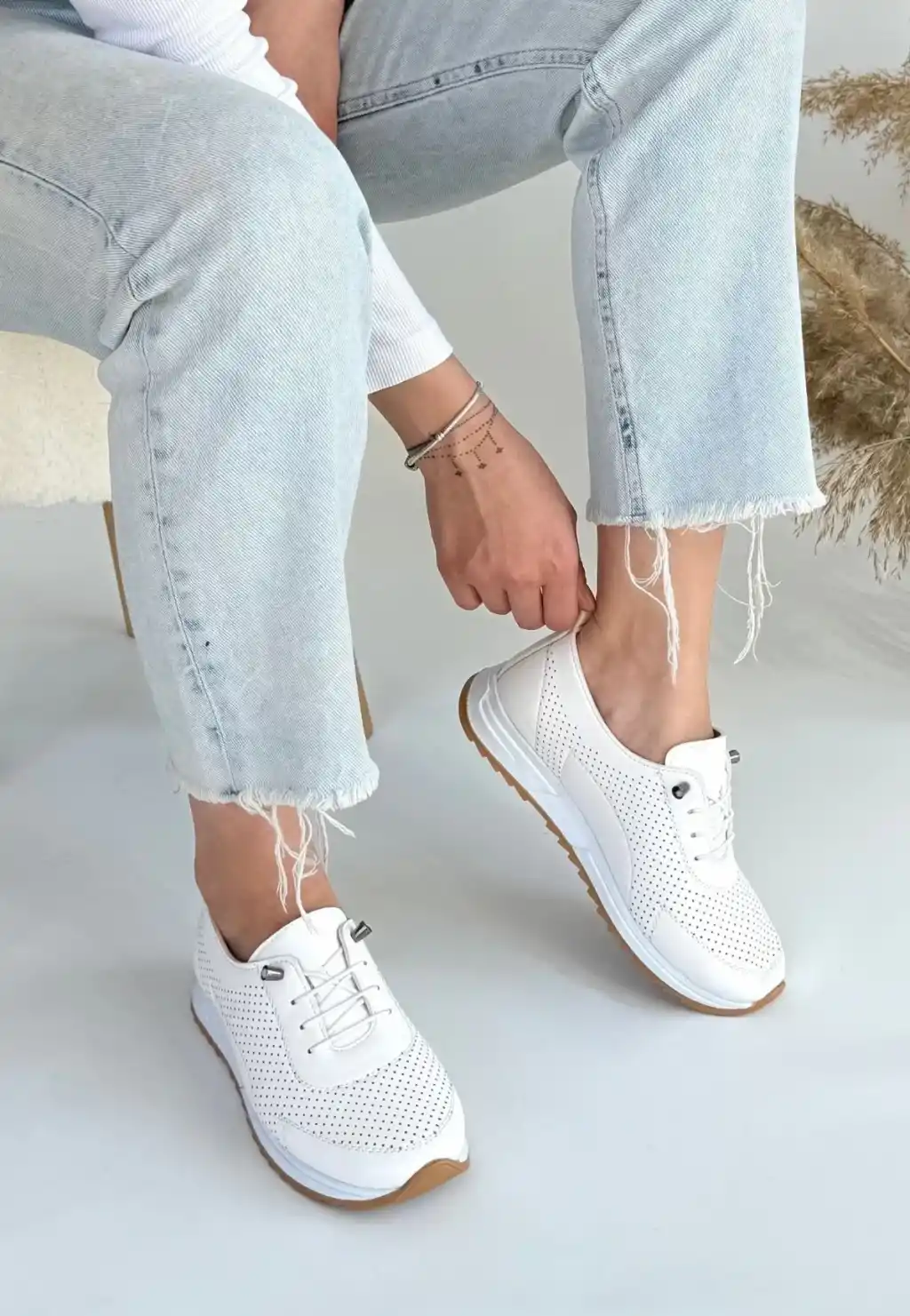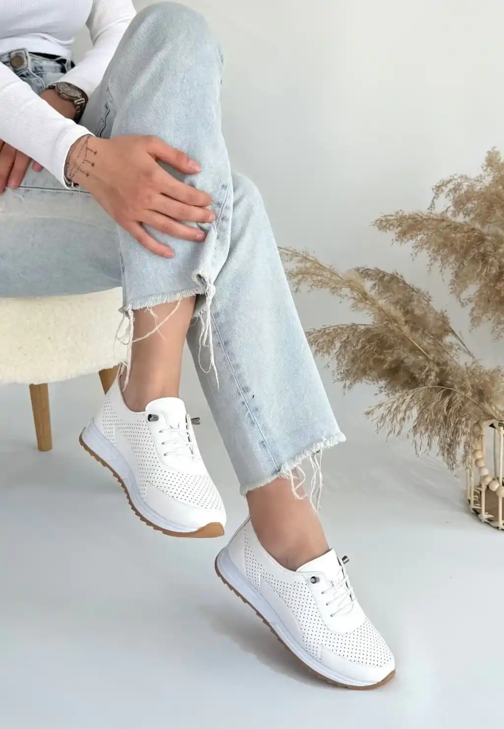 Tone Beyaz Cilt Bağcıklı Spor Ayakkabı
