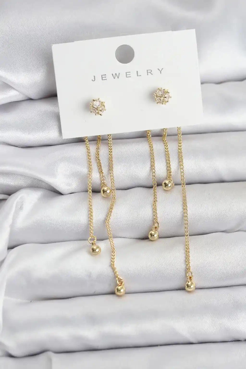 Topçuk Model Gold Renk Pirinç Sallantılı Kadın Küpe Seti