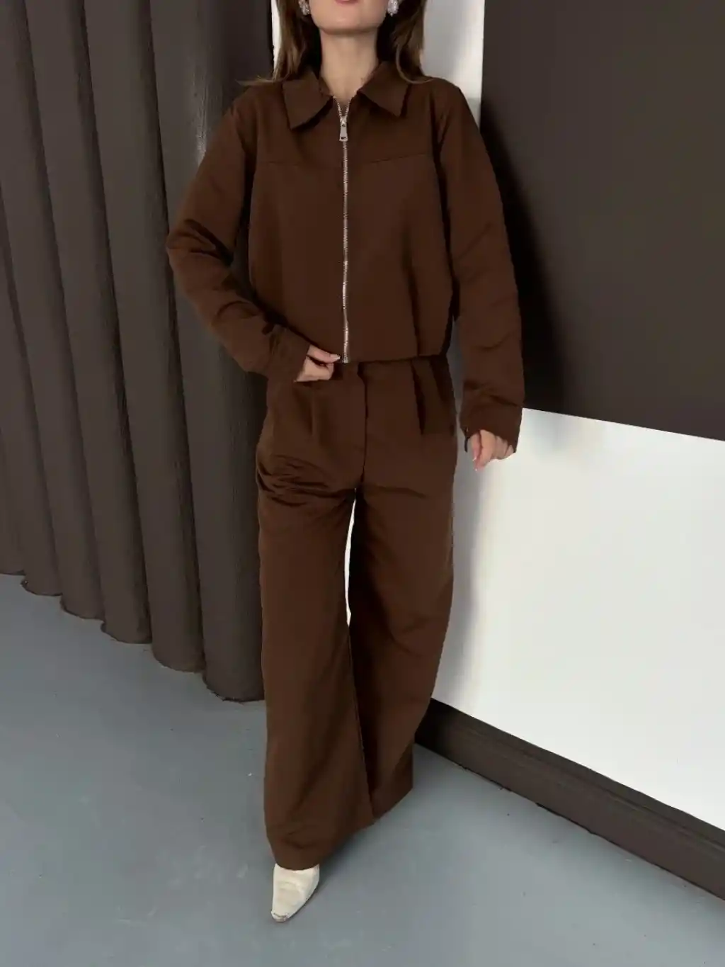 Trenç takım alt üst kahve ons