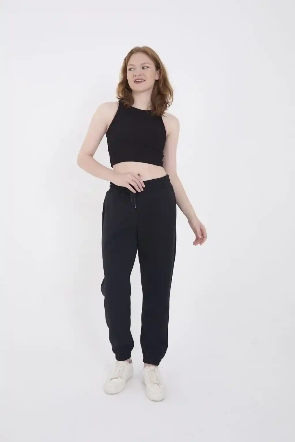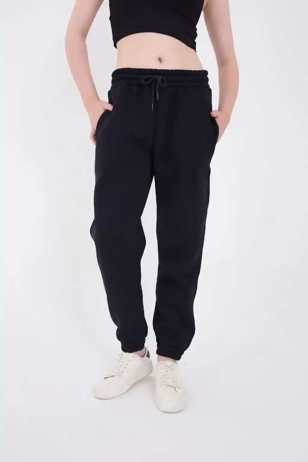 Kadın Siyah Jogger Eşofman Altı Rahat Kalıp, Kargo Cepli, Lastikli Paça, Günlük Spor Pantolon - Siyah