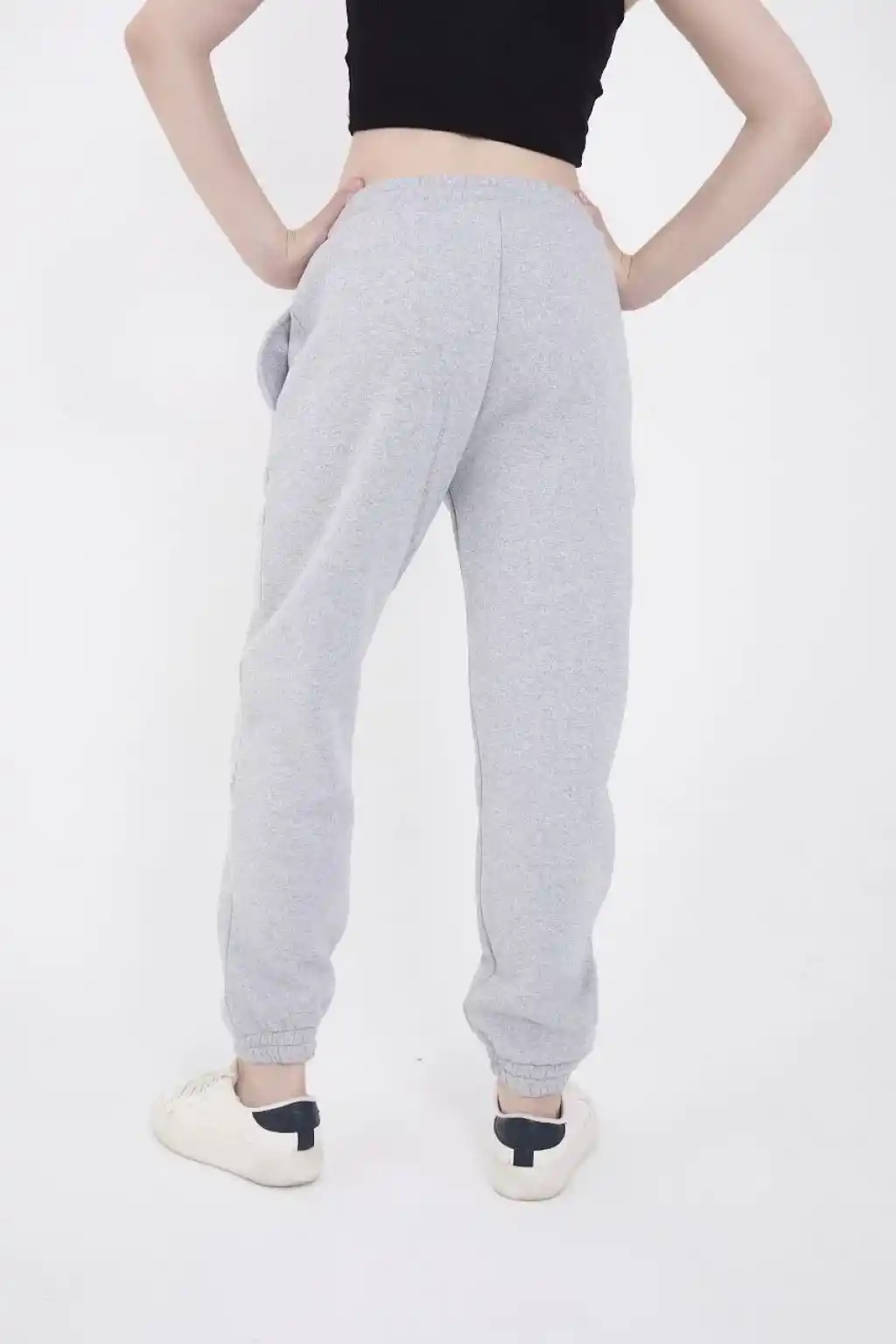 Üç İplik Lastikli Baskılı Eşofman Pantolon - Gri