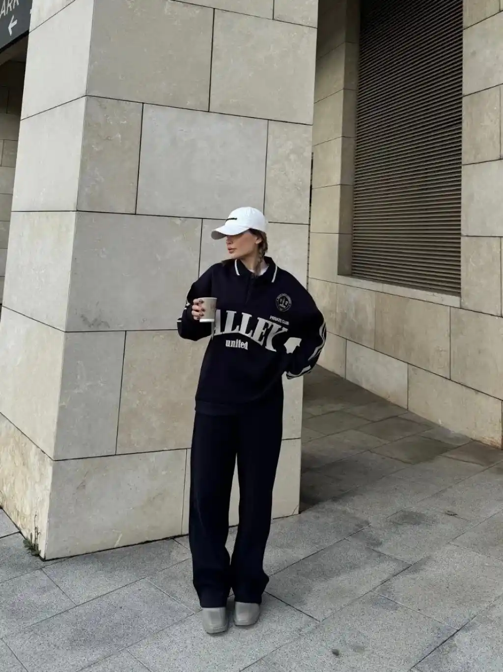 Üç İplik Yakalı Sweat Baggy Pantalonlu Takım - Siyah