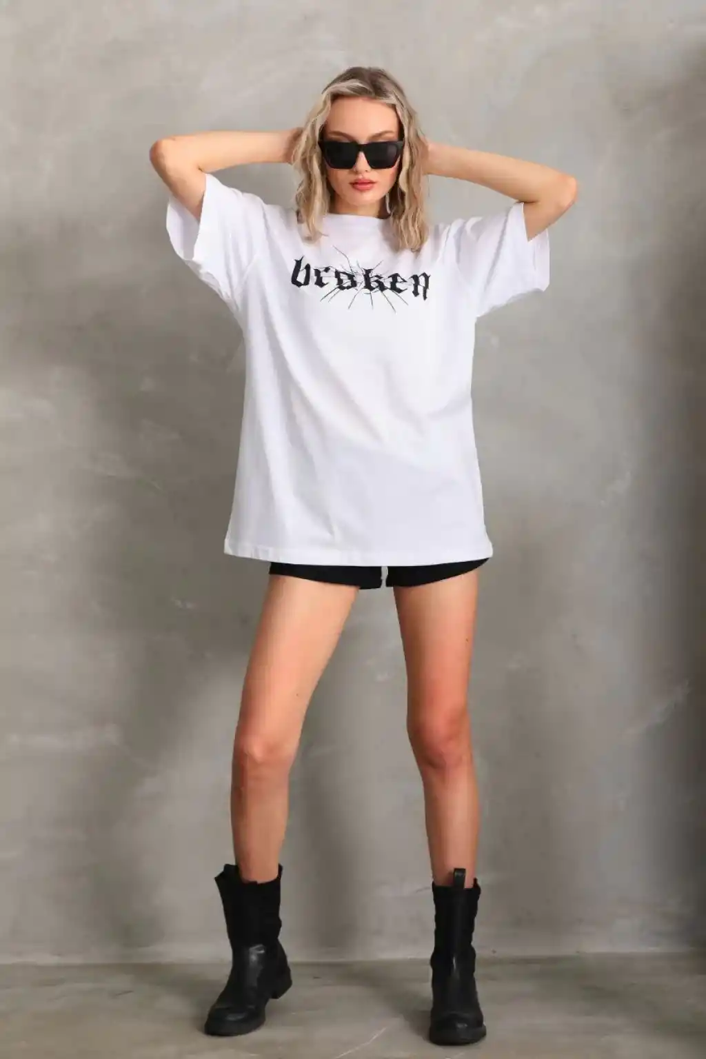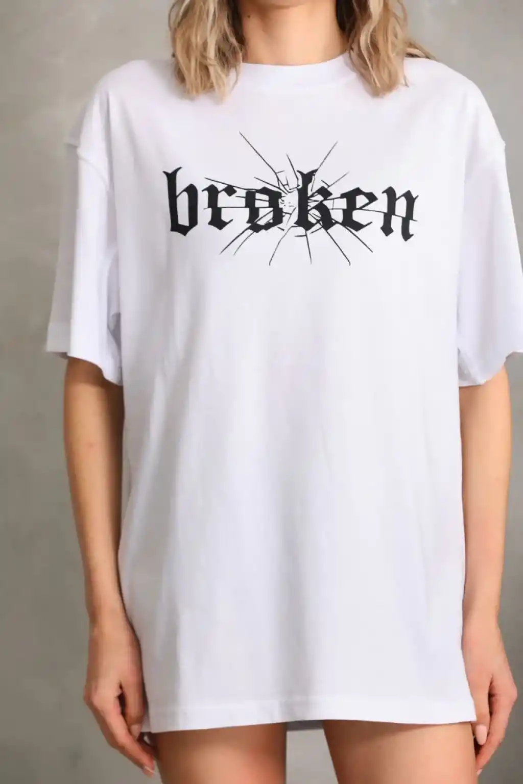 AICG Ön Arka Baskılı Bisiklet Yaka Kadın Oversize Bisiklet Yaka T-shirt - Beyaz