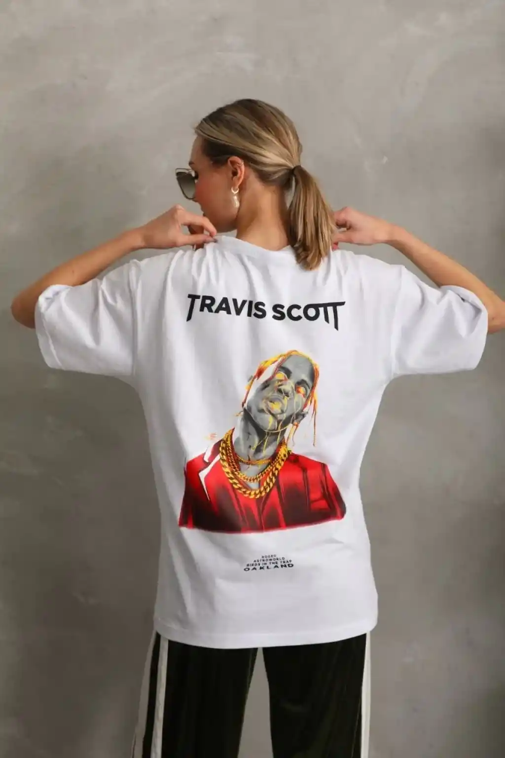 Unisex Baskılı Oversize T-Shirt - Beyaz