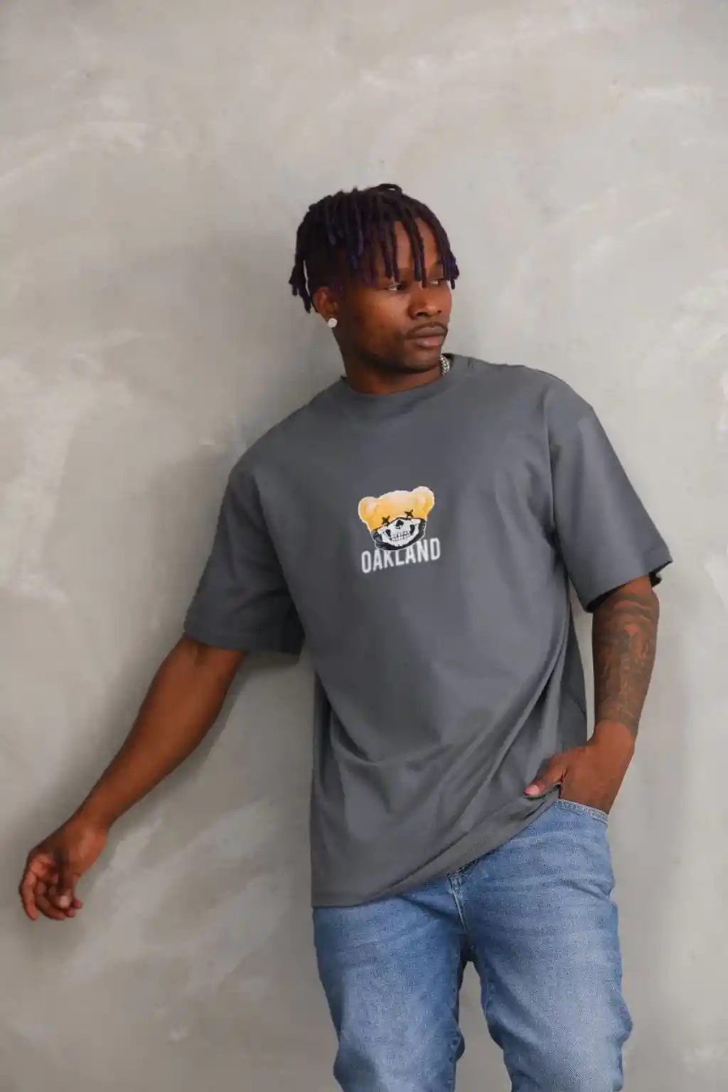 Unisex Baskılı Oversize T-Shirt - Füme