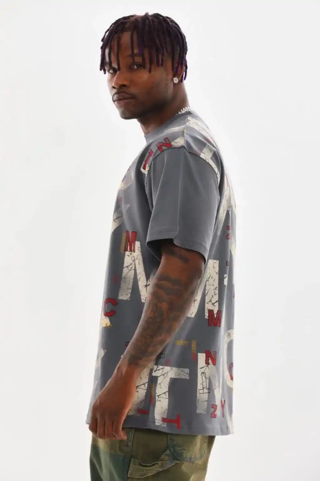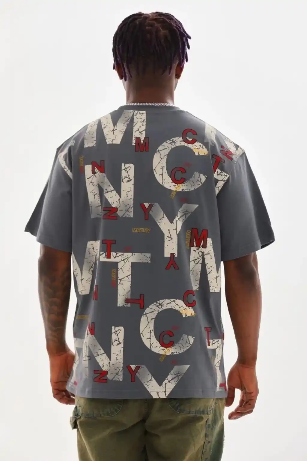 Erkek Oversize Baskılı Tişört – Golf GTI Retro Araba Desenli, Ön & Arka Dijital Baskı, Sokak Modası Stil - Gri