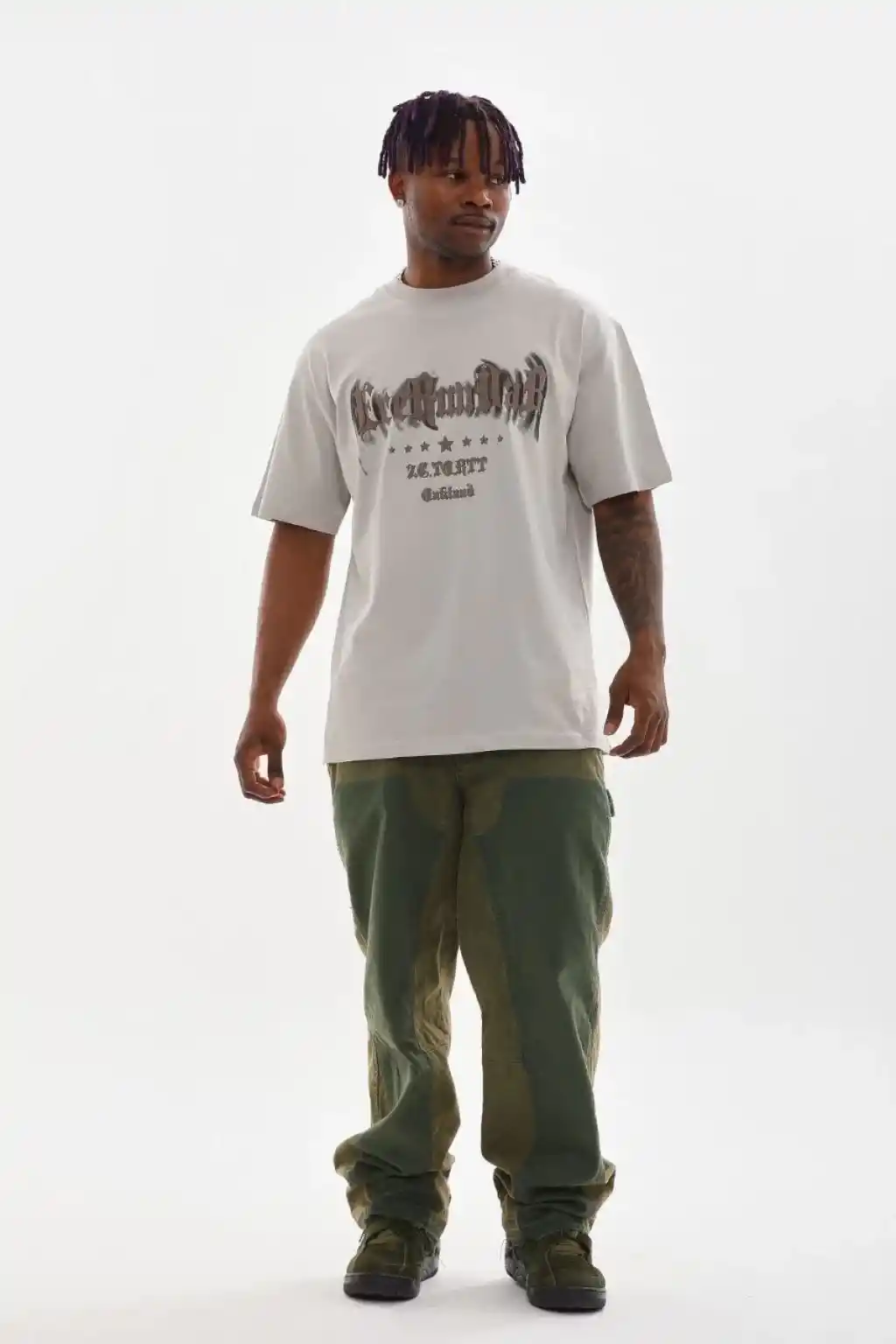 Unisex Baskılı Oversize T-Shirt - Gri