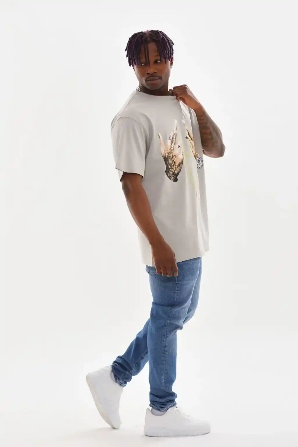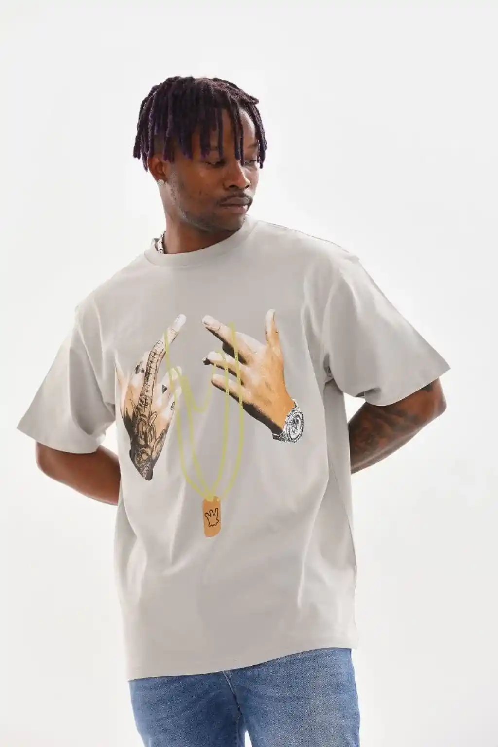 Erkek Oversize Baskılı Tişört – Golf GTI Retro Araba Desenli, Ön & Arka Dijital Baskı, Sokak Modası Stil - Gri