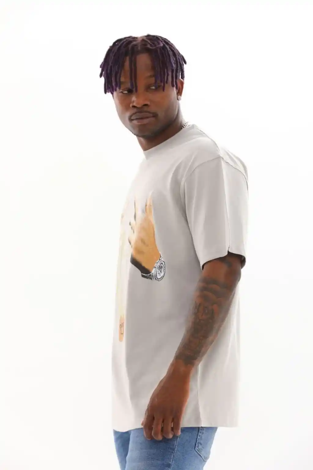 20/1 Penye Compack Ön Arka Ejder Baskılı Oversize Bisiklet Yaka T-shirt - Beyaz