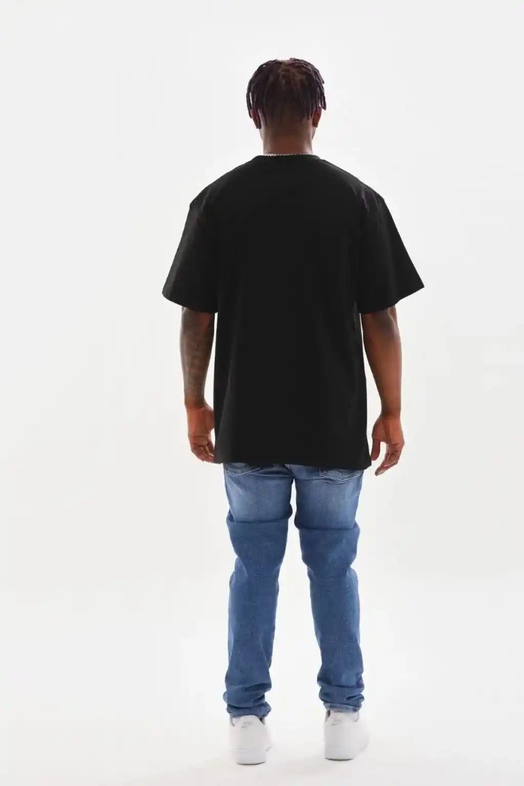 Unisex Baskılı Oversize T-Shirt - Siyah