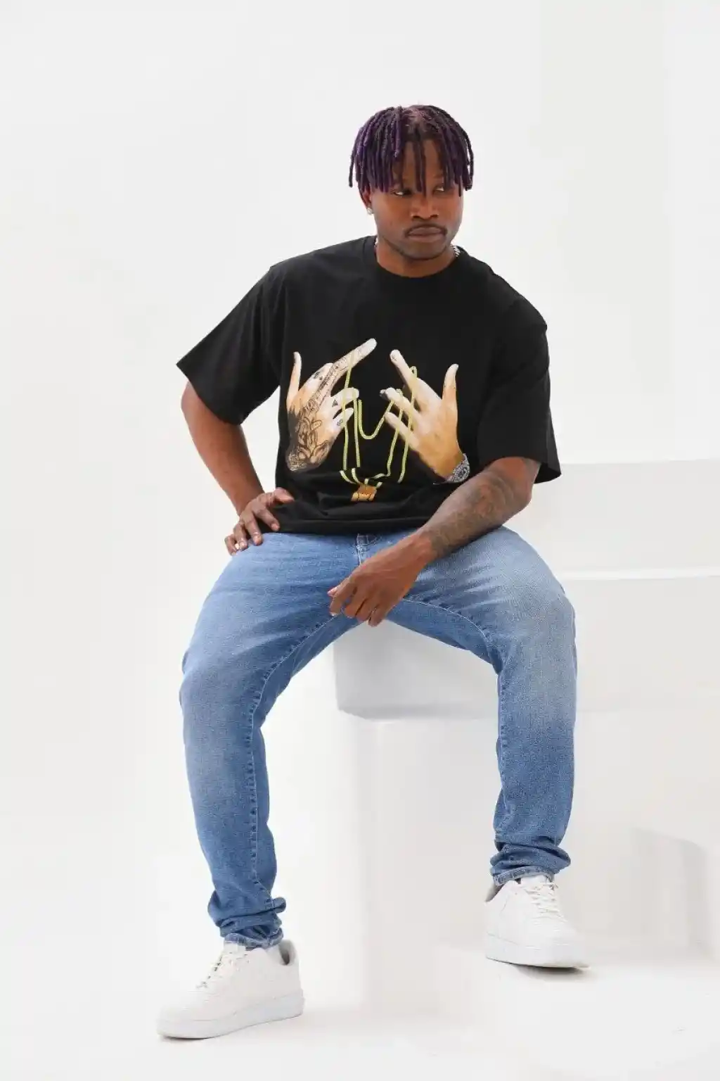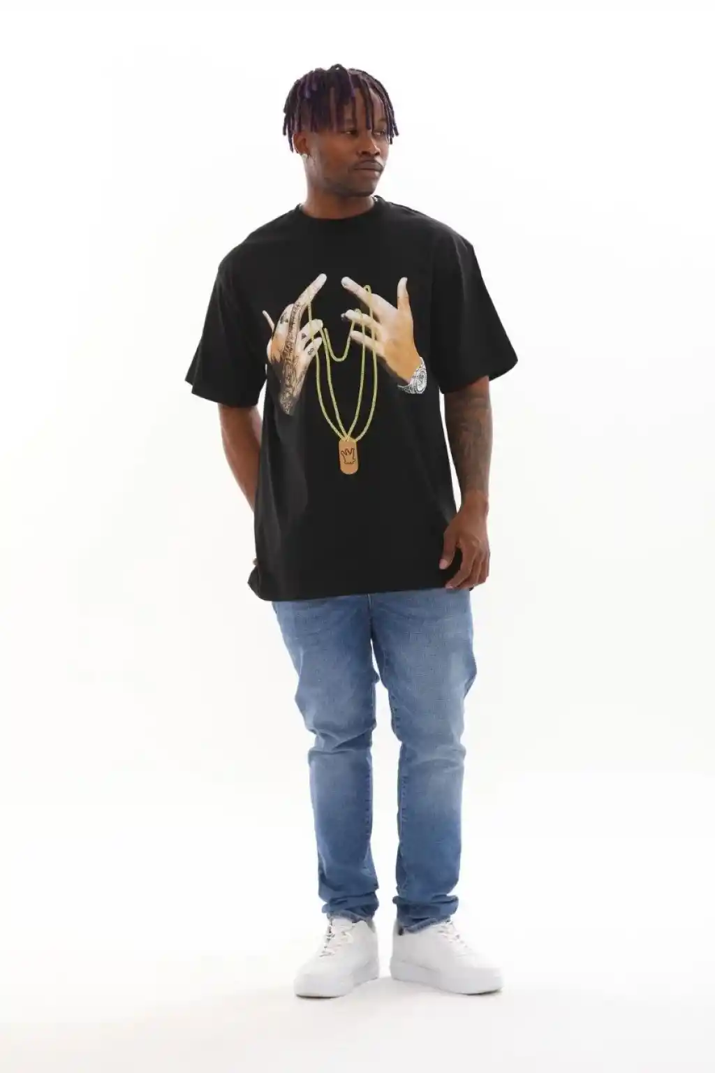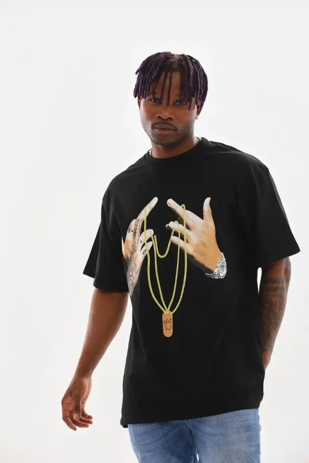 Unisex Baskılı Oversize T-Shirt - Siyah