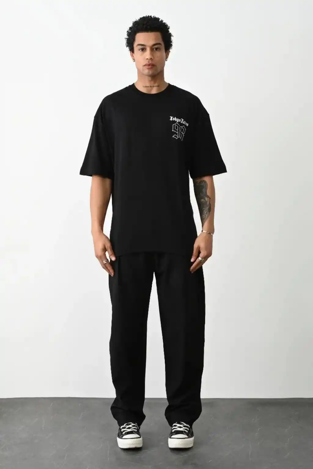 Unisex Baskılı Oversize T-Shirt - Siyah