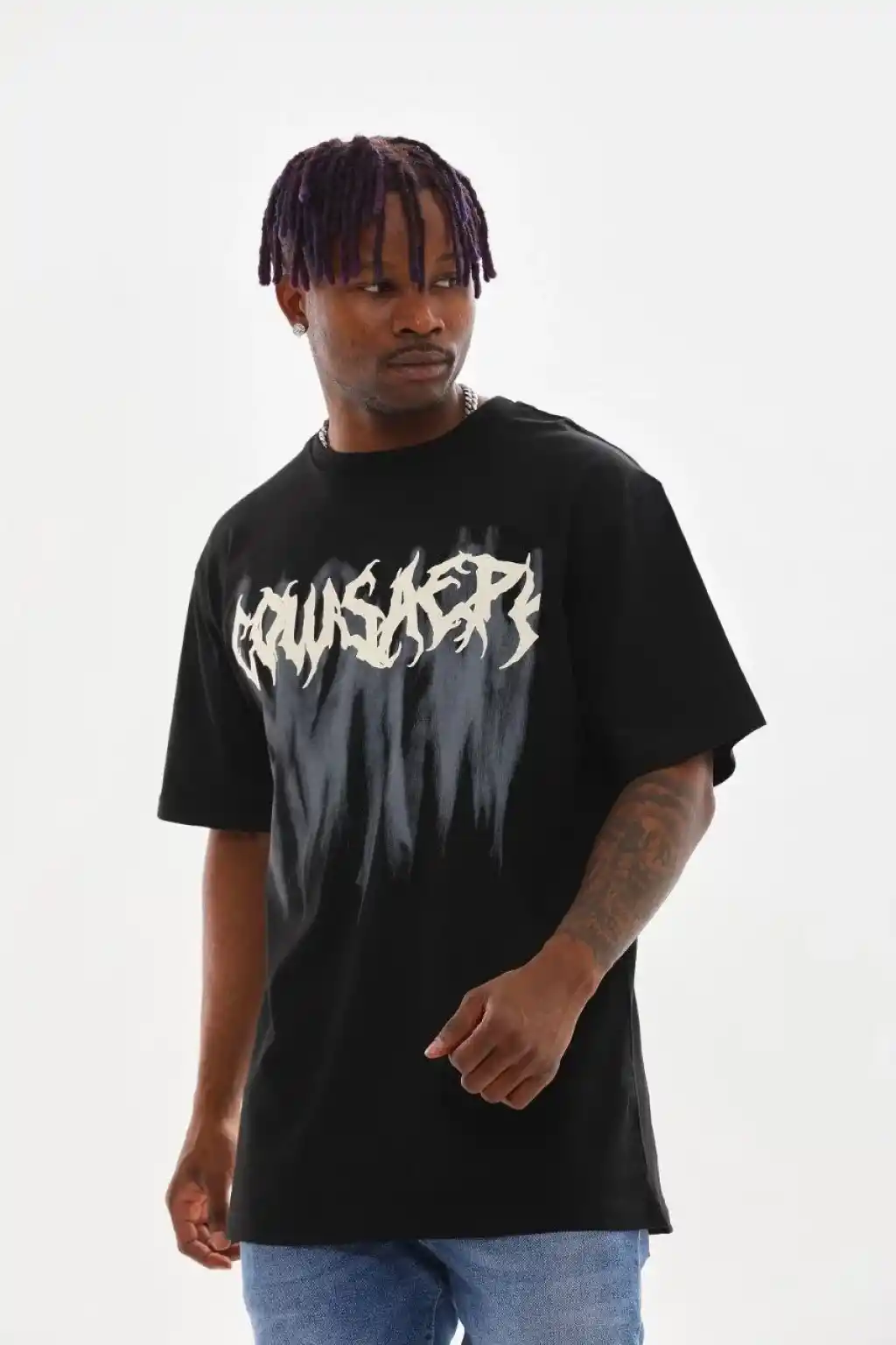 Unisex Baskılı Oversize T-Shirt - Siyah