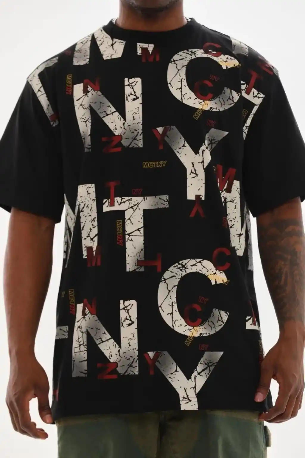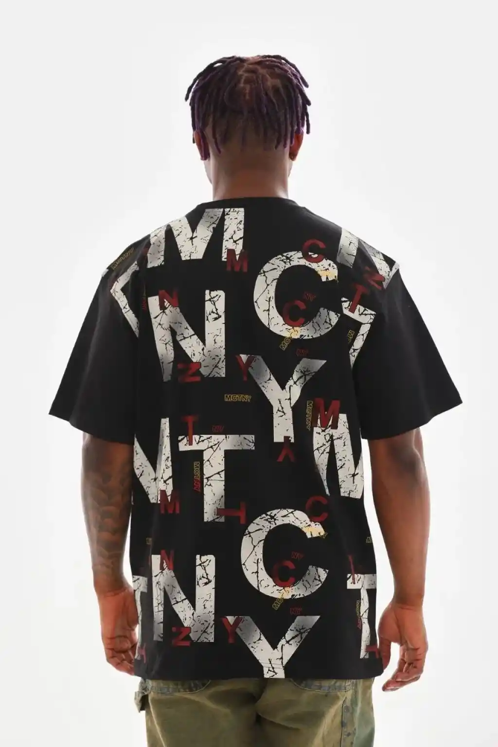 Unisex Baskılı Oversize T-Shirt - Siyah