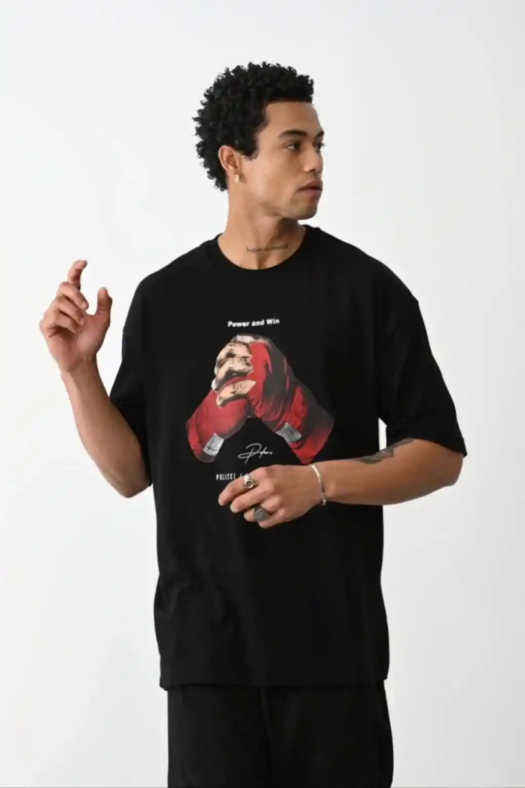 Unisex Baskılı Oversize T-Shirt - Siyah