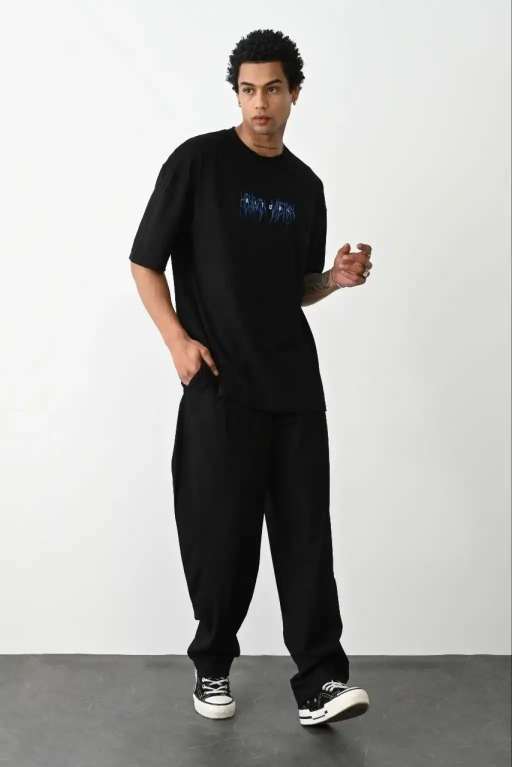 Unisex Baskılı Oversize T-Shirt - Siyah