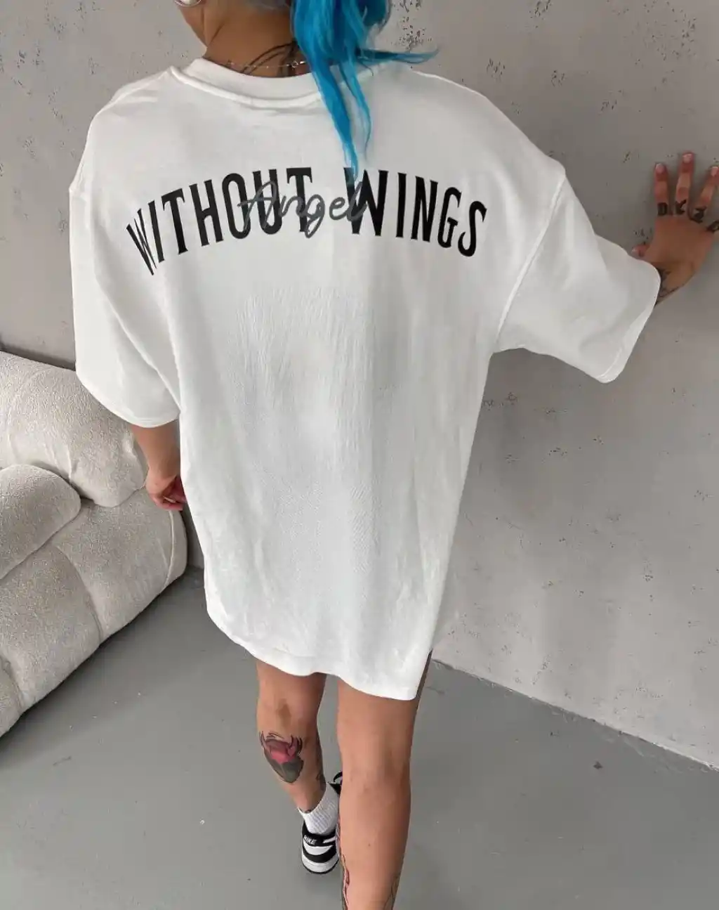 AICG Ön Arka Baskılı Bisiklet Yaka Kadın Oversize Bisiklet Yaka T-shirt - Beyaz