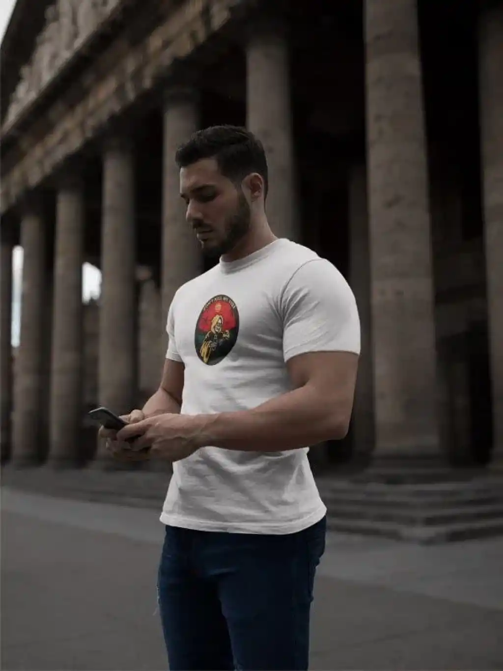 Eşsiz Baskı Tasarımlı Şık Büyük Beden Erkek Tişörtü - Rahat Polyester, Makinede Yıkanabilir, Yuvarlak Yaka - Her Mevsim İçin Mükemmel - Beyaz