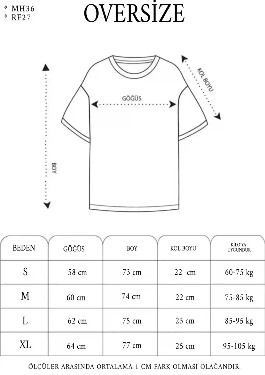 AICG Ön Arka Baskılı Bisiklet Yaka Kadın Oversize Bisiklet Yaka T-shirt - Beyaz