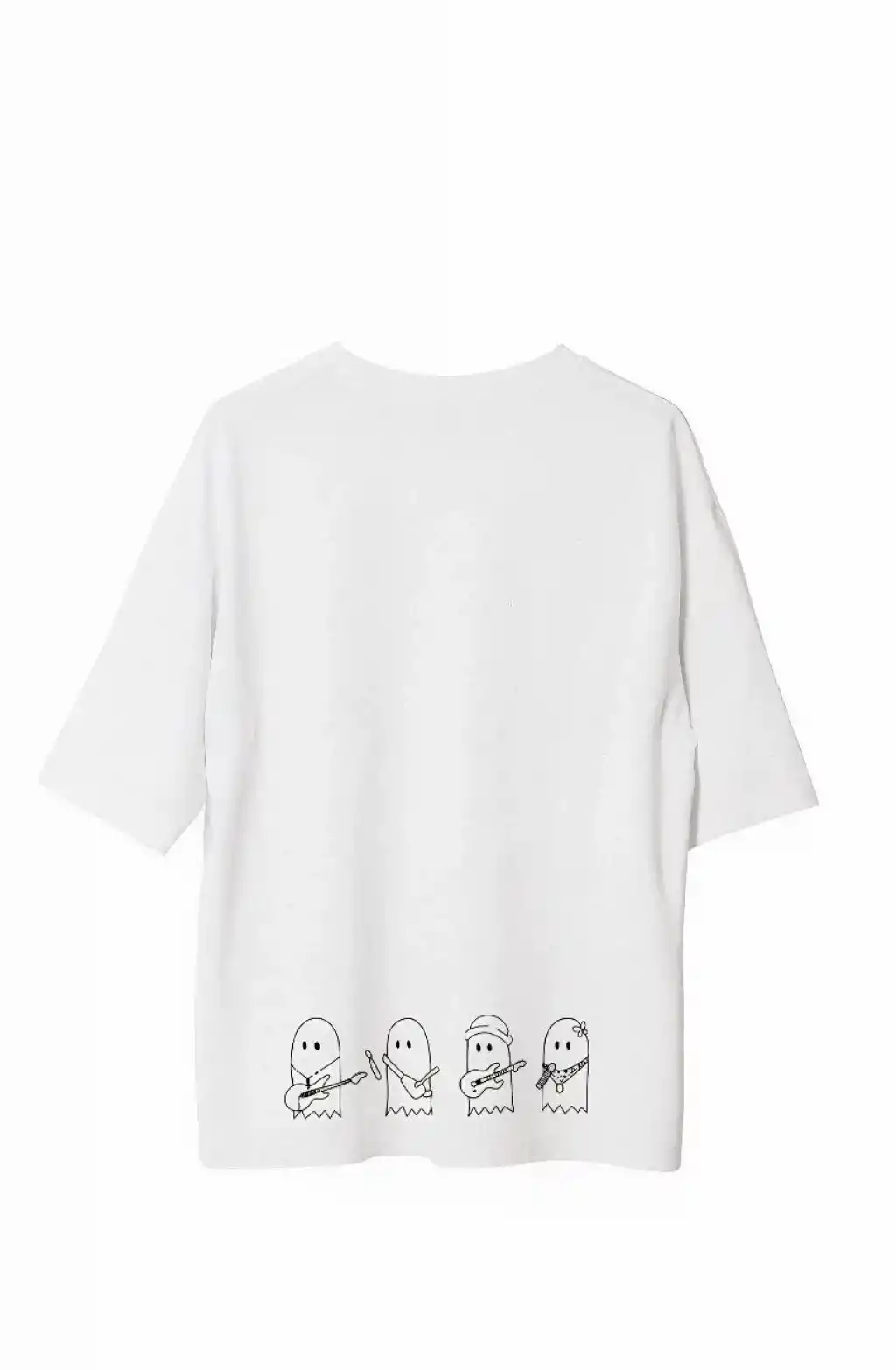 Unisex Bisiklet Yaka Baskılı Oversize T-Shirt - Beyaz