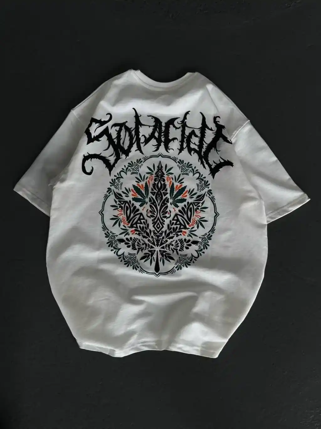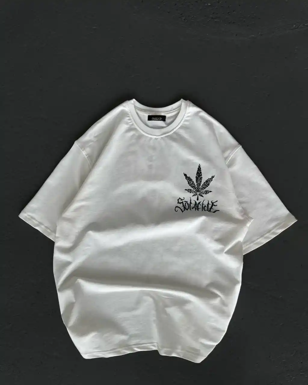 Unisex Bisiklet Yaka Baskılı Oversize T-Shirt - Beyaz