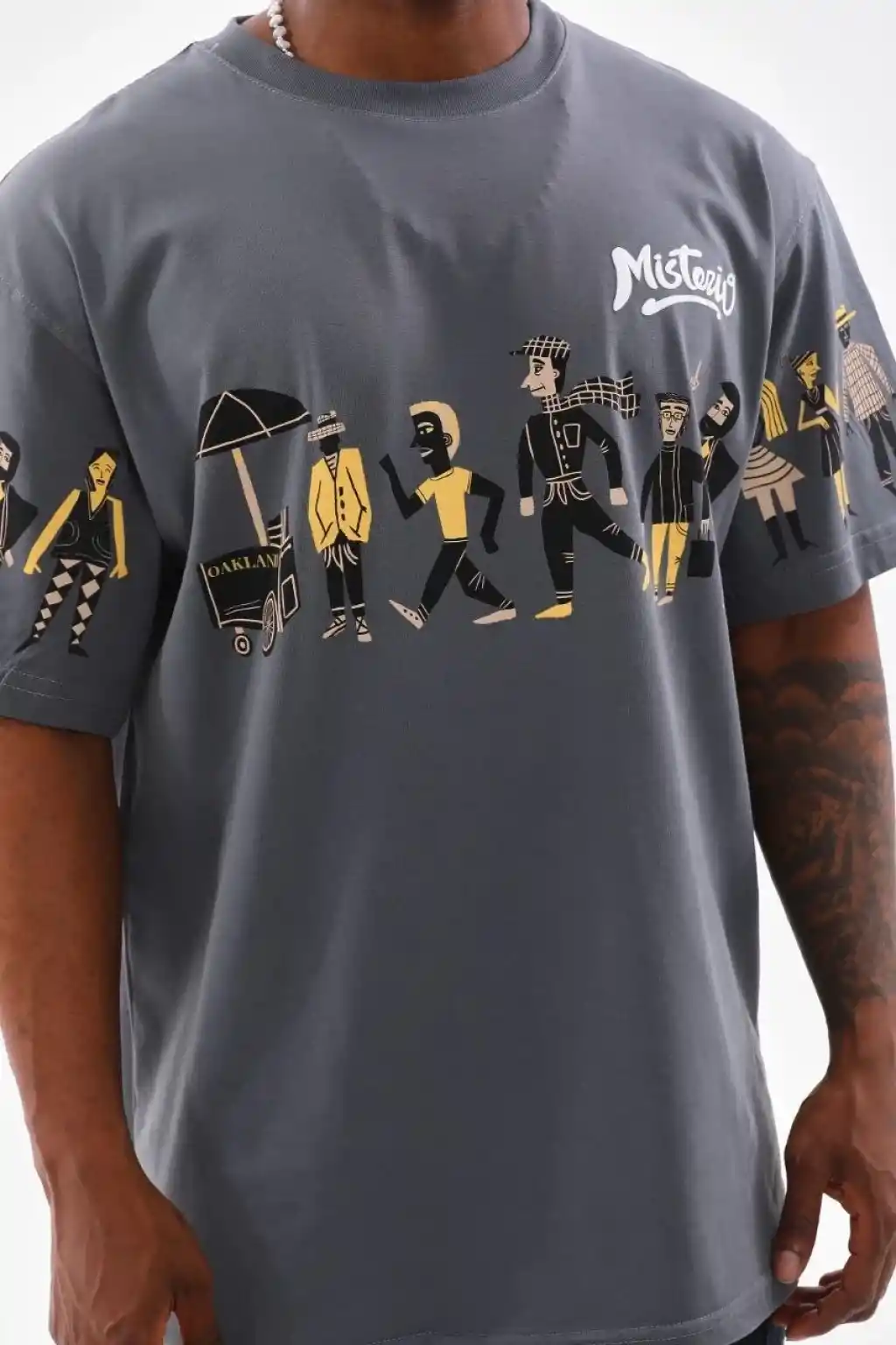 Unisex Bisiklet Yaka Baskılı Oversize T-Shirt - Gri