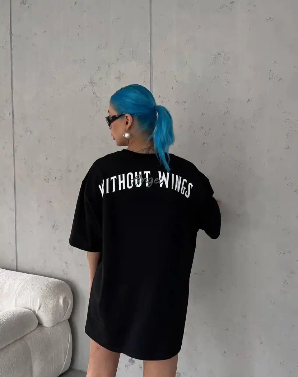 AICG Ön Arka Baskılı Bisiklet Yaka Kadın Oversize Bisiklet Yaka T-shirt - Siyah