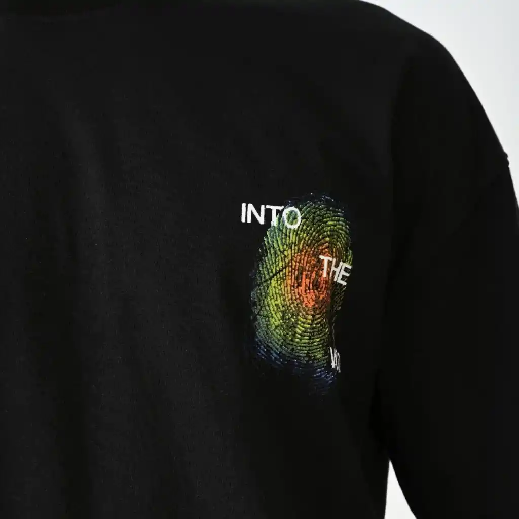 Unisex Bisiklet Yaka Baskılı Oversize T-Shirt - Siyah