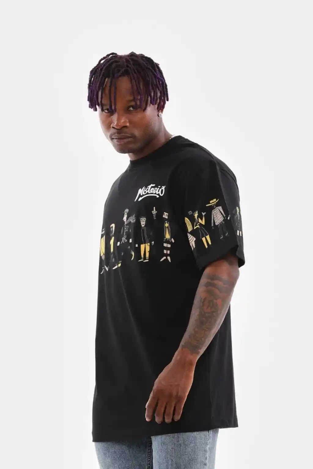 Benzersiz Sırt Baskılı Erkek Sokak Stili Bol Tişört - Nefes Alabilir Polyester, Makinede Yıkanabilir - Siyah